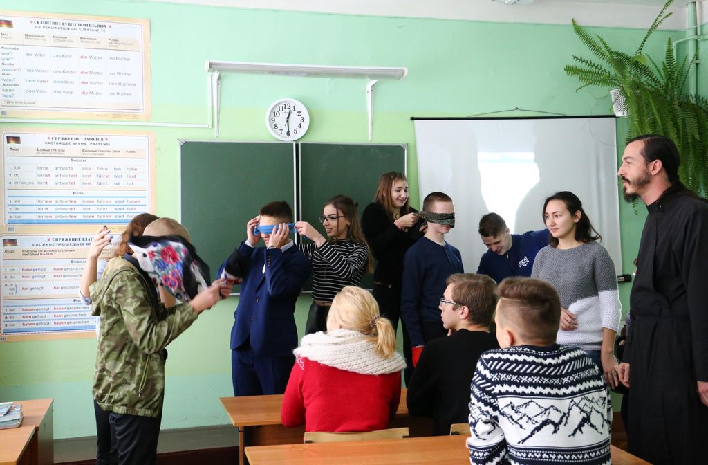 28 ноября в общеобразовательном лицее деревни Демихово Орехово-Зуевского района состоялся открытый урок для учащихся 9-х классов на тему «Нравственные ценности — будущее человечества. Проявление милосердия на примере помощи незрячим людям». На уроке были показаны видеоролики и проведены интерактивные тренинги по взаимодействию с людьми с ограничением зрения. Ребят познакомили также с работами детей с ограниченными возможностями здоровья. Урок провели ответственный за миссионерскую деятельность в Орехово-Зуевском благочинии П.С. Королев и волонтеры Никольского храма г. Орехово-Зуево.