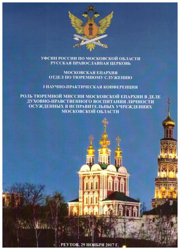 29 ноября в рамках XV Московских областных Рождественских образовательных чтений в г. Реутове в молодежном культурно-досуговом центре состоялась I научно-практическая конференция на тему «Роль тюремной миссии Московской епархии в деле духовно-нравственного воспитания личности осужденных в исправительных учреждениях Московской области». В конференции приняли участие временно исполняющий обязанности начальника УФСИН России по Московской области, полковник внутренней службы Фазил Алиев, председатель отдела по тюремному служению Московской епархии, помощник начальника УФСИН России по Московской области по организации работы с верующими священник Михаил Куземка, председатель общественного совета при УФСИН России по Московской области Владимир Носов, члены Епархиального отдела по тюремному служению, сотрудники отделов и служб управления. С докладами, посвященными теме конференции, выступили священник Михаил Куземка, заместитель начальника отдела воспитательной работы с осужденными УФСИН России по Московской области, подполковник внутренней службы Ольга Абрамович, помощник начальника УФСИН России по Московской области по соблюдению прав человека в УИС, полковник внутренней службы Александр Лысов, духовник СИЗО-10 г. Можайска иеромонах Димитрий (Леонов), духовник Можайской воспитательной колонии священник Сергий Постников. По итогам работы конференции сотрудники уголовно-исполнительной системы и священнослужители отметили важность проведения подобных мероприятий для обмена накопленного опыта и осмысления потенциала тюремной мисси Московской епархии в деле духовно-нравственного воспитания осужденных.