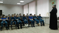 18 декабря в доме культуры села Барановское Воскресенского района настоятель Вознесенского храма протоиерей Сергий Рыбаков провел урок с учащимися Воскресенской кадетской школы на тему «Житие святителя Николая Чудотворца».