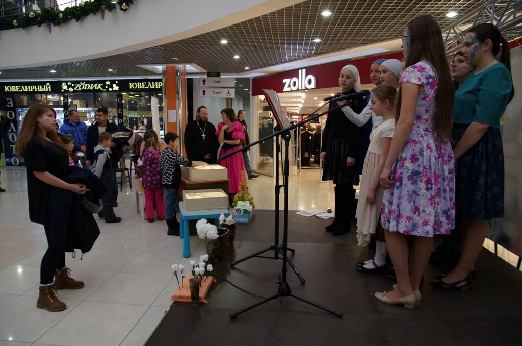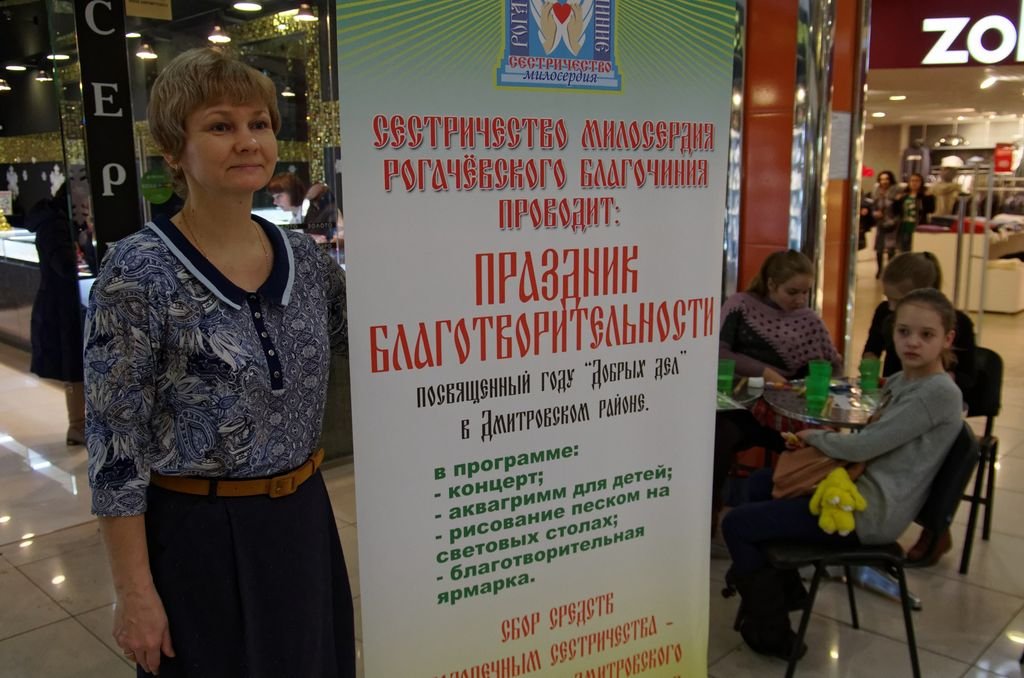 24 декабря в торгово-развлекательном комплексе «Центр» г. Дмитрова прошла благотворительная акция сестричества милосердия Рогачевского благочиния во имя сщмч. Серафима, епископа Дмитровского. Целью акции был сбор средств для юных жителей Дмитровского района, нуждающихся в медицинской помощи. Участниками акции, кроме сестер сестричества, стали участники молодежного объединения «Белый цветок земли Дмитровской», а также воспитанники воскресных школ храмов Рогачевского благочиния, которые исполняли театральные и музыкальные номера. Во время акции проводилась благотворительная ярмарка сувениров, изготовленных воспитанниками детского сада № 67 «Лучик» села Рогачево. Перед началом акции к ее участникам обратился помощник благочинного Рогачевского церковного округа священник Андрей Барышев.