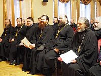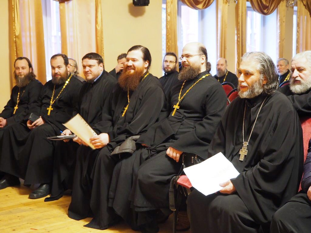 27 декабря в актовом зале детской церковной музыкальной школы при Успенском храме г. Красногорска состоялось собрание духовенства Красногорского благочиния. Благочинный протоиерей Константин Островский рассказал священнослужителям о восстановлении порушенных святынь в Московской епархии, и о ходе восстановительных работ в Никольском храме в Павшине. Собравшиеся обсудили намеченные в Красногорском благочинии мероприятия, посвященные почитанию новомучеников. На пастырском семинаре с докладом на тему «Обзор решений Архиерейского Собора 29 ноября – 2 декабря 2017 г.» выступил протоиерей Константин Островский.