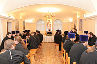 28 декабря в Георгиевском храме г. Видное состоялось собрание духовенства Видновского церковного округа, в начале которого состоялась церемония награждения духовенства и мирян юбилейными патриаршими медалями Русской Православной Церкви «В память 100-летия восстановления Патриаршества в Русской Православной Церкви». Благочинный Видновского церковного округа протоиерей Михаил Егоров выступил с сообщением о результатах Архиерейского Собора Русской Православной Церкви, а также о собрании благочинных Московской епархии. Далее ответственные за различные направления работы в благочинии выступили с докладами о проделанной работе, были подведены итоги деятельности приходов благочиния за 2017 год и обсуждены планы пастырских семинаров на 2018 год. В ходе собрания протоиереем Михаилом Егоровым и начальником управления образования администрации Ленинского района О.В. Алешкиной было подписано соглашение о взаимодействии управления образования района и Видновского благочиния.