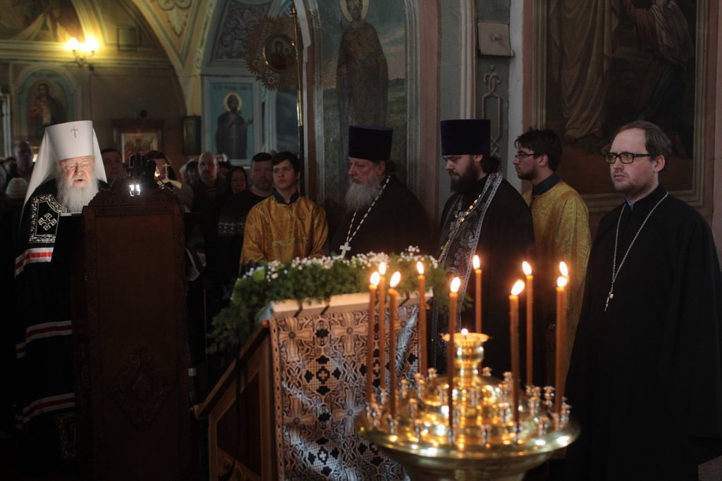 По окончании богослужения митрополит Ювеналий обратился к духовенству и молящимся: «Возлюбленные братья и сестры! Я рад, что в начале Великого поста вы посещаете храм Божий, чтобы очистить свою душу от скверны греха, и чтобы получить Божию помощь в исправлении своей жизни. Святая Церковь в эти дни своими песнопениями, и особенно первые четыре дня при чтении канона преподобного Андрея Критского, предлагает нам многие примеры человеческих падений и, вместе с тем, Божия милосердия к людям. Поэтому и мы будем, проводя Великий пост, назидаться примерами жизни святых отцов и нашего дорогого отца Владимира, который много, много лет был здесь вашим пастырем и нашим духовным отцом. Мы верим, что Господь по Своему милосердию будет принимать его молитвы и сейчас, когда он предстоит перед Престолом Божиим в жизни вечной. Желаю вам помощи Божией в жизни, ваших трудах, и чтобы вы, очистив душу свою покаянием, достигли и поклонились Светлому Христову Воскресению».