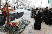 Затем Владыка митрополит побывал на могиле протоиерея Владимира Ганина у восточной стены храма, где была возглашена «вечная память» почившему священнослужителю.