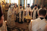 За великим повечерием Владыка митрополит возглавил чтение Великого покаянного канона преподобного Андрея Критского.