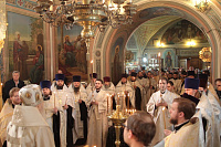 Перед началом богослужения митрополит Ювеналий обратился к собравшимся с архипастырским словом: «Всечестные отцы, дорогие братья и сестры! Я очень тронут и рад, что на сороковой день после кончины отца Владимира вы пришли в этот храм. Все эти сорок дней мы усердно молились о новопреставленном протоиерее Владимире, который остался в нашей памяти как добрый пастырь, который прошел в своей жизни многие испытания и всегда оставался верен Христу и Его Церкви.