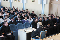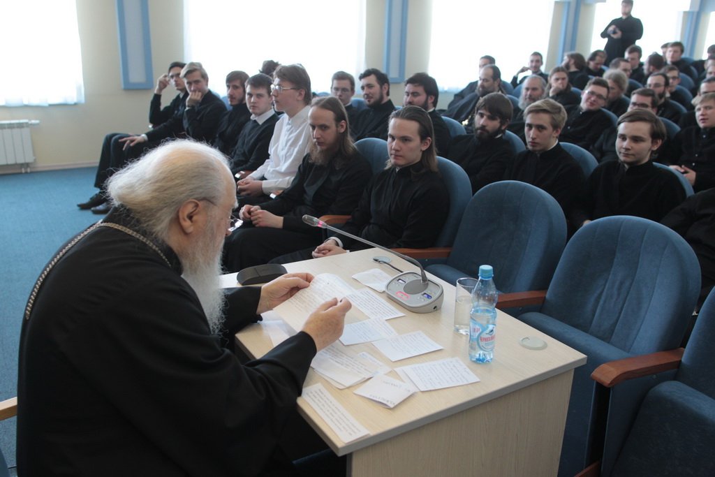 В актовом зале семинарии состоялась встреча Владыки митрополита с преподавателями и студентами, в ходе которой архипастырь рассказал о жизни Московской епархии и ответил на многочисленные вопросы учащихся.