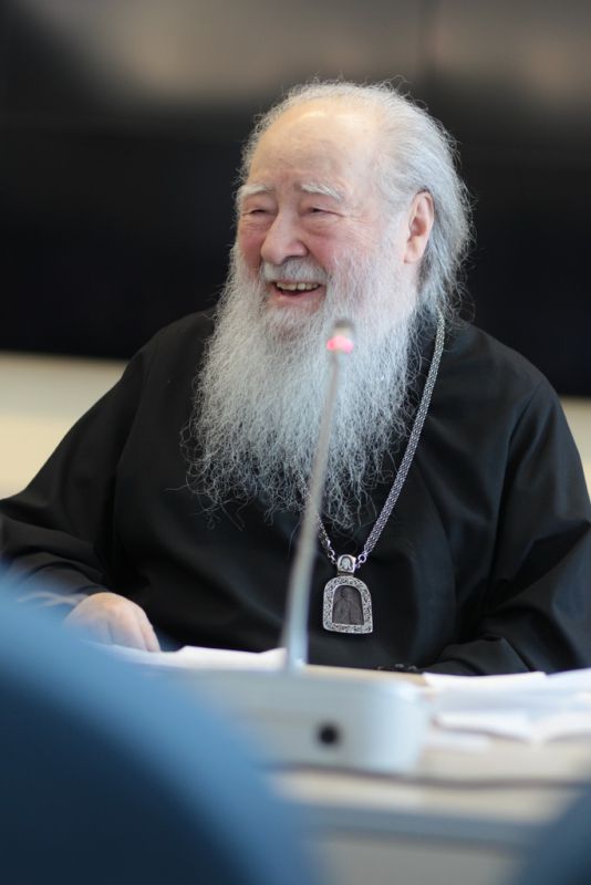 Дорогие Владыки, братья и сестры! Сегодня вы были свидетелями, как я рукополагал студента семинарии, теперь уже отца Константина, во диаконы. Я поздравляю его и желаю многой помощи Божией в служении. Так совпало, что в этот день его отцу, протоиерею Владиславу Бобикову, благочинному Дубненско-Талдомского церковного округа, исполнилось пятьдесят лет. Половину жизни Вы уже прожили, дорогой батюшка, и лучшие свои годы отдали служению Церкви. И то, что сегодня был рукоположен Ваш сын, говорит о том, что и о домашней своей церкви Вы несли попечение, и сегодня мы видим плоды ваших духовных трудов и воспитания. Я поздравляю Вас с рукоположением во диакона Вашего сына и с золотым юбилеем. Зная, сколько трудов Вы полагаете как пастырь и как благочинный, хочу в этой торжественной обстановке поблагодарить Вас за усердное служение. В знак моего видимого благословения хочу вручить вам Благодарственную грамоту. Аксиос!»
