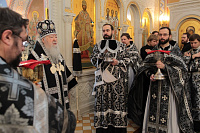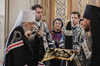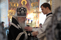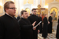 За Божественной литургией митрополит Ювеналий рукоположил в сан диакона студента 4 курса чтеца Константина Бобикова.