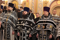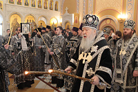 Вечером в Михаило-Архангельском храме Коломны митрополит Ювеналий совершил великое повечерие с чтением Великого покаянного канона преподобного Андрея Критского. За богослужением молились епископ Луховицкий Петр и коломенское духовенство. По окончании богослужения Владыка обратился к прихожанам с архипастырским словом: «Ваше Преосвященство, дорогой Владыка Петр, всечестные возлюбленные отцы, братья и сестры! Я рад, что Господь дал мне возможность сегодняшний день провести в моем возлюбленном городе Коломне. Утром я совершил Божественную литургию и молился вместе с преподавателями и студентами нашей Коломенской духовной семинарии, а после трапезы имел со студентами продолжительную беседу об их будущем пастырском служении. Завершая сегодняшний визит, я благодарю Господа, что Он дал мне возможность помолиться с вами в день, когда мы достигли середины первой седмицы Великого поста, которая наполнена особыми духовными воспоминаниями и молитвами. Совершение поста – это древний, непрекращающийся в течении веков христианский обычай. Мы знаем из Евангелия, что перед выходом на общественное служение Христос Спаситель удалился в пустыню и там в подвиге молитвы провел в посте сорок дней. В Евангелии говорится, что Он, «постившись сорок дней и сорок ночей, напоследок взалкал» (см.: Мф. 4:1-2). И пришло искушение от диавола, который предлагал Ему все царствия мира, лишь бы Он поклонился ему (см.: Мф. 4:8). Возлюбленные братья и сестры! Мы, конечно, подражаем Господу, стремимся к этому, но насколько мы духовно слабее Его! И если Он, проведя пост в молитве, не избежал искушения, то как мы, грешные и немощные, можем думать, что если мы попостились, не ели скоромного, то уже спасены? Святая Церковь назидает нас, призывая в своем песнопении: «Постящеся, братие, телесне, постимся и духовне». Поэтому пост не заключается для нас только во вкушении постной пищи, а параллельно с этим, если мы постимся, мы должны обратить внимание на свое духовное состояние. А тут столько искушений, что кажется, с ними и за весь пост не справишься. Постясь духовно, нужно избавиться от осуждения, от зависти, от всего, что отдаляет нас от Господа, а здесь, на земле – друг от друга, и создает вражду, ненависть и отчуждение. Даже в семьях мы замечаем, что порой не можем даже один день удержаться от того, чтобы кого-то не обидеть. Поэтому нужен и духовный пост, который заключается в том, что мы должны напрячь все свои силы, чтобы из сердца своего исторгнуть ненависть, зависть и все, что нас друг от друга отдаляет; не иметь злобы после того, как в Прощеное воскресенье мы простили друг другу все, что наполняло недобрыми чувствами наши сердца. Сегодня здесь много духовенства нашего Коломенского благочиния, и я хотел бы обратиться к вам, возлюбленные братья-священники, чтобы вы особенно благоговейно совершали богослужение. Я обратил внимание, что настоятель этого храма делал возгласы громко и ясно, и думаю, что все, кто стоял в храме, слышали каждое слово. Нужно помочь нашим прихожанам прийти ко Христу, освободиться от тяжести греховной, и для этого наши батюшки с терпением должны и совершать богослужение, и Таинство Исповеди, и проповедовать. Все мы во время Великого поста должны усердно трудиться, показывая милосердие к нашим ближним, помогать страждущим, немощным, одиноким людям и через 