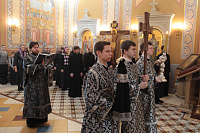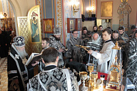 21 февраля, в среду первой седмицы Великого поста, митрополит Ювеналий совершил традиционный визит в Коломну. В Трехсвятительском храме Коломенской духовной семинарии Его Высокопреосвященство совершил первую в этом году Литургию Преждеосвященных Даров. Ему сослужили ректор КДС епископ Зарайский Константин, благочинный города Коломны и Коломенского района епископ Луховицкий Петр, преподаватели, студенты в священном сане и духовенство Московской епархии. За богослужением пел семинарский хор под управлением регента диакона Николая Глухова.