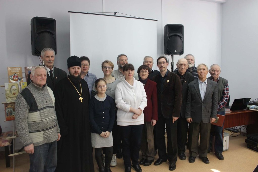 24 февраля настоятель ярополецких храмов священник Михаил Завитаев присутствовал на встрече с приехавшим в Волоколамск главным редактором историко-краеведческого альманаха «Подмосковный летописец» Сергеем Шокаревым. Общение состоялось в Волоколамской центральной библиотеке в кругу местных краеведов. Батюшка поблагодарил Сергея Юрьевича за поддержку приходских и волонтерских трудов по спасению Казанского храма в Яропольце и подарил ему книгу о священномученике Владимире Смирнове. Еще два экземпляра книги были переданы в фонд Волоколамской библиотеки.