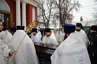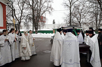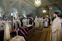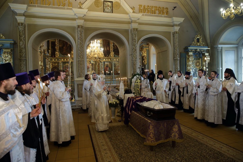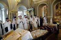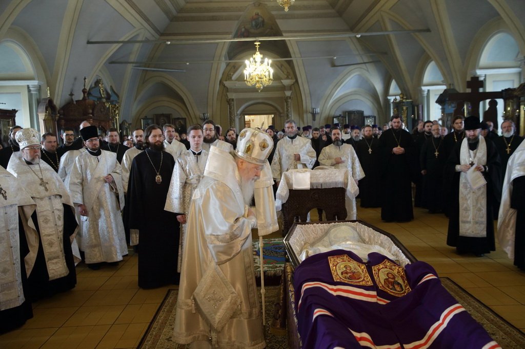 Владыка митрополит совершил панихиду по новопреставленному архипастырю. На богослужении молился епископ Луховицкий Петр.