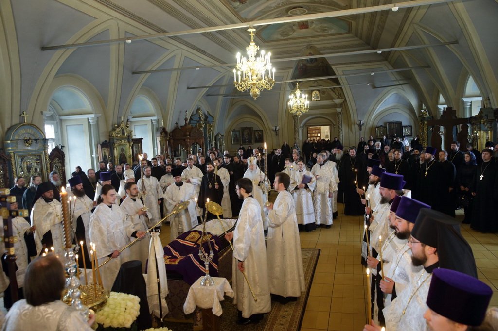 По окончании богослужения духовенство Московской епархии продолжило чтение Евангелия, которое будет совершаться до начала Литургии Преждеосвященных Даров 27 февраля.