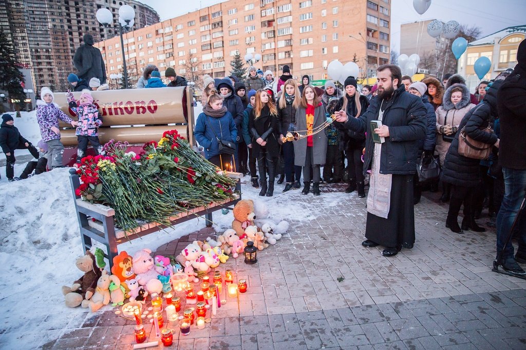 27 марта у временного мемориала памяти на площади В.И. Ленина в г. Щелково прошла акция памяти по жертвам трагедии в Кемерове. В акции приняли участие глава Щелковского района А.В. Валов и настоятель Серафимо-Саровского храма г. Щелково священник Виталий Крикота, который совершил панихиду по жертвам трагедии.