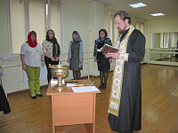 28 марта клирик храма блаженной Матроны поселка Любимовка священник Никита Потапов совершил освящение детской школы искусств г. Королева. За богослужением молились руководитель и педагоги школы.