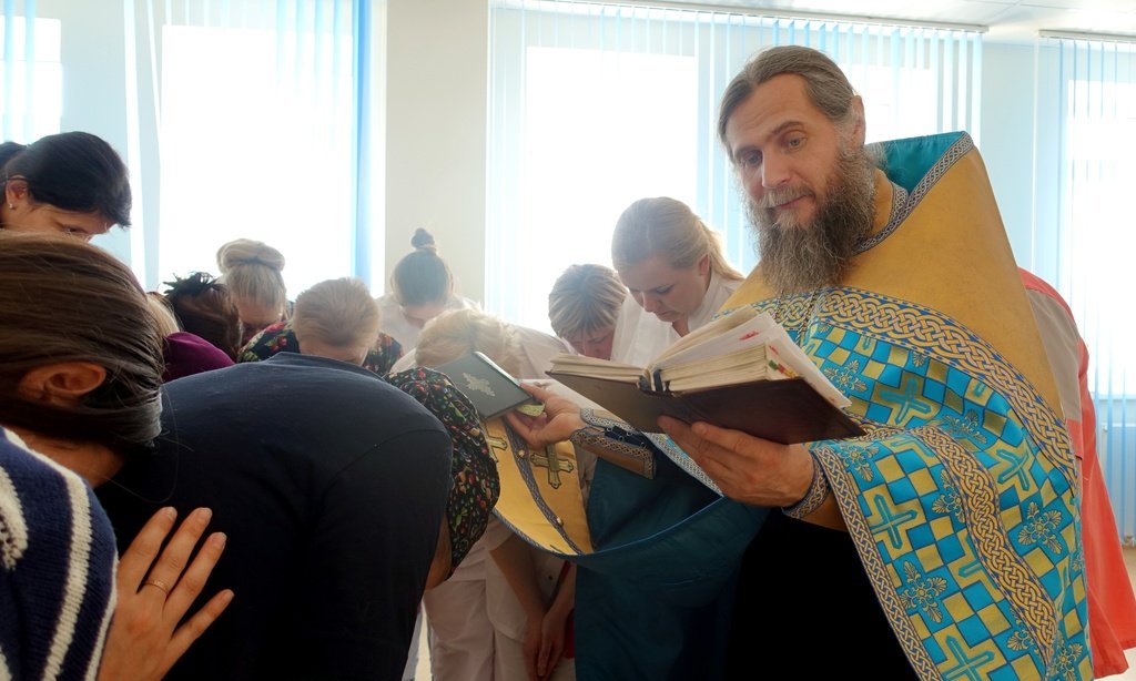 28 марта настоятель Преображенского храма мкр. Саввино г.о. Балашиха протоиерей Виталий Кулешов совершил Таинство Елеосвящения в Балашихинском роддоме. К таинству приступили медицинский персонал и пациентки. После совершения соборования отец Виталий вместе со всеми собравшимися помолился о упокоении погибших в торговом центре г. Кемерово.