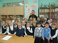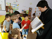 24 марта настоятель Никольского храма села Ермолино протоиерей Виктор Ястремский провел урок в детской воскресной школе «Ника» на тему «В мире православной книги».