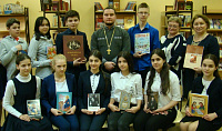 25 марта в библиотеке сельского поселения Совхоза им. Ленина состоялась встреча учащихся 9-х классов средней школы поселка с клириком Преображенского храма священником Алексием Васильевым. В ходе беседе отец Алексий рассказал о процессе формирования письменной традиции и христианского книжного наследия.