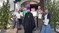 27 мая в Богородицерождественском храме на Возмище г. Волоколамска состоялось вручение свидетельств об окончании Библейско-богословских курсов имени преподобного Сергия Радонежского. Перед началом вручения благодарственный молебен совершил заведующий Волоколамским отделением ББК, настоятель Казанского храма села Ярополец священник Михаил Завитаев.