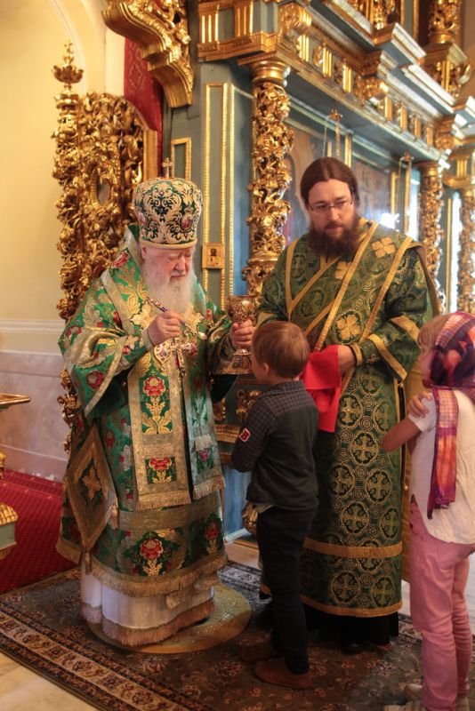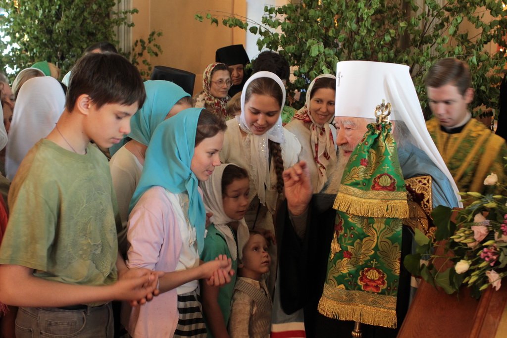 В этом году мы вспоминаем столетие начала гонений на Русскую Православную Церковь и прославляем наших новомучеников и исповедников. У них не хватило бы человеческих сил, если бы они не были вдохновлены силой и помощью Святого Духа. Каждый из нас, немощный и грешный человек, чувствует, что когда он обращается к Богу, то получает эту всесильную помощь. Сегодня – наш всенародный и всеобщий праздник. Пусть Господь, ниспосылая нам Своего Духа Утешителя, укрепляет нас в жизни и трудах. Храни вас всех Господь».