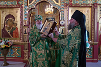 27 июня в Николо-Пешношском мужском монастыре прошли торжества, посвященные дню памяти преподобного Мефодия Пешношского и 80-летию кончины преподобномученика Иосафа (Шахова). Праздничные торжества в обители в этот день возглавил епископ Видновский Тихон. У Сергиевского храма Владыку встречали игумен Николо-Пешношского монастыря Григорий (Клименко), заместитель главы Дмитровского муниципального района О.В. Долгова, начальник территориального управления №4 (Рогачево-Куликово) М.Н. Хохлов и начальник управления по развитию культуры и туризма администрации района А.В. Аксенчик. За Божественной литургией Его Преосвященству сослужили игумен Николо-Пешношского монастыря Григорий (Клименко), духовенство Дмитровского, Рогачевского и Яхромского церковных округов. Для участия в празднике в обитель прибыли многочисленные паломники и прихожане. По окончании Божественной литургии епископ Видновский Тихон и служащее духовенство совершили крестный ход и молебен преподобному Мефодию Пешношскому. С приветственным словом к Его Преосвященству обратился игумен обители Григорий (Клименко). В завершение богослужения с архипастырским словом к участникам юбилейных торжеств обратился епископ Видновский Тихон.