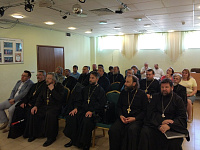 28 июня в Воскресенском храме г. Подольска состоялся семинар по вопросам оформления имущественных прав на землю и здания храмов. С разъяснениями по этим вопросам перед клириками Подольского благочиния выступил ответственный за оформление имущественных прав на землю, здания храмов и другие объекты недвижимости Московской епархии протоиерей Артемий Гранкин. Онг ответил на вопросы настоятелей и дал рекомендации по оформлению необходимых документов для каждого прихода.
