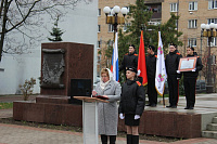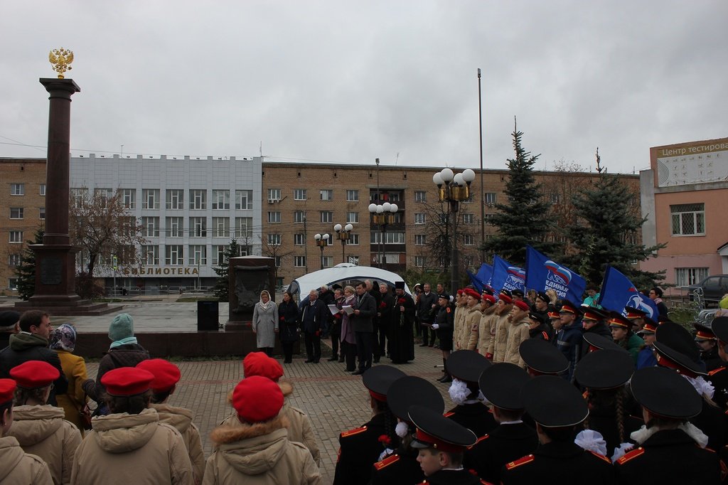 28 октября у стелы «Город воинской славы» состоялся митинг, посвященный 10-летней годовщине присвоения городу Дмитрову почетного звания «Город воинской славы». На мероприятии присутствовали помощник благочинного Дмитровского церковного округа протоиерей Дмитрий Скидаленко, заместитель главы администрации Дмитровского района Е. А. Виноградова, депутат Мособлдумы М.В. Шевченко, президент Дмитровской муниципальной торгово-промышленной палаты В.А. Логачев, члены организации «Боевое братство» г. Дмитрова.