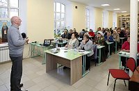 28 октября в просветительском центре при Никольском храме г. Орехово-Зуево состоялся семинар на тему «Разумное, научно-историческое основание христианской веры», который провел филолог, магистр богословия, кандидат педагогических наук, соавтор учебников «Основы православной культуры» и «Основы мировых религиозных культур» О. В. Воскресенский. На семинаре присутствовали преподаватели начальных классов г. Орехово-Зуево и Орехово-Зуевского района, ответственный за миссионерскую работу в Орехово-Зуевском благочинии П.С. Королев, миссионеры-катехизаторы храмов Орехово-Зуевского благочиния и слушатели первого курса Миссионерско-катехизаторских курсов Орехово-Зуевского отделения.