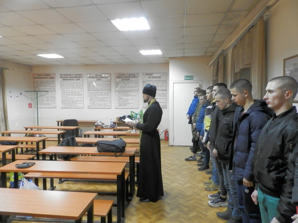 29 октября ответственный в благочинии города Коломны за взаимодействие с Вооруженными силами и правоохранительными учреждениями, настоятель Борисоглебского храма священник Алексий Трошин совершил молебен в Коломенском военкомате и обратился к призывникам с напутственным словом.