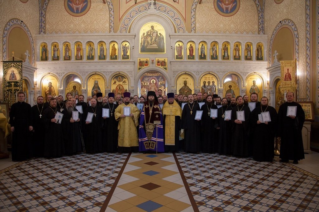 31 октября в Коломенской духовной семинарии состоялся выпуск слушателей первой сессии Курсов повышения квалификации священнослужителей Московской епархии (КПКС). Ректор КДС епископ Зарайский Константин в сослужении заведующего КПКС протоиерея Максима Максимова совершил благодарственный молебен, по окончании которого состоялась церемония вручения выпускных удостоверений. По результатам итоговой аттестации удостоверения о получении квалификации получили 56 клириков Московской епархии.