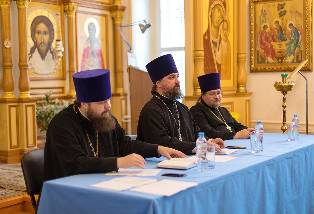 28 ноября в Христорождественском храме села Ямкино прошло собрание духовенства Богородского благочиния. Возглавил заседание благочинный церквей Богородского округа протоиерей Марк Ермолаев. На собрании обсуждались текущие вопросы приходской и богослужебной жизни благочиния и ход восстановления Серафимовского храма села Федино Воскресенского района.