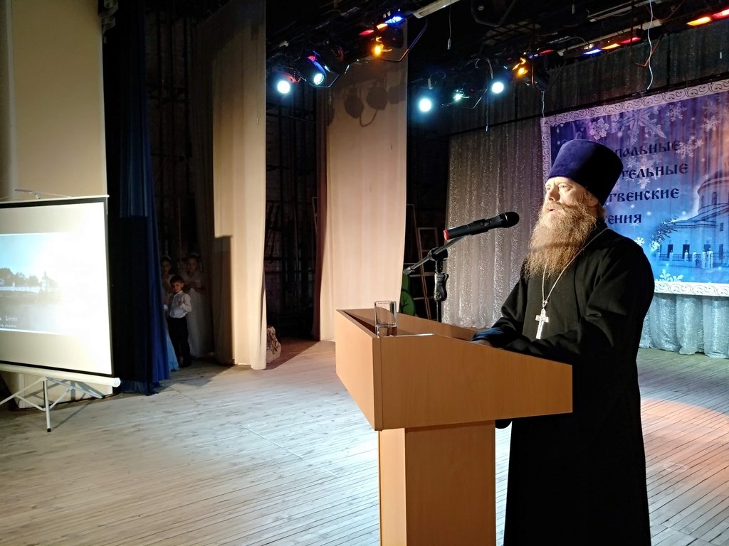27 ноября в Серпуховском драматическом театре состоялось открытие Рождественских муниципальных чтений в городском округе Серпухов. К собравшимся с приветственным словом обратились начальник управления образования г.о. Серпухов Л.В. Владимирова и помощник благочинного Серпуховского церковного округа священник Димитрий Студенцов. Затем с докладами выступили настоятельница Введенского женского монастыря г. Серпухова игумения Алексия (Петрова), директор Православной гимназии во имя прп. Варлаама Серпуховского Л.А. Эрлих и педагоги г. Серпухова. Хоровые коллективы православной гимназии и Серпуховского благочиния исполнили песнопения, посвященные празднику Рождества Христова.