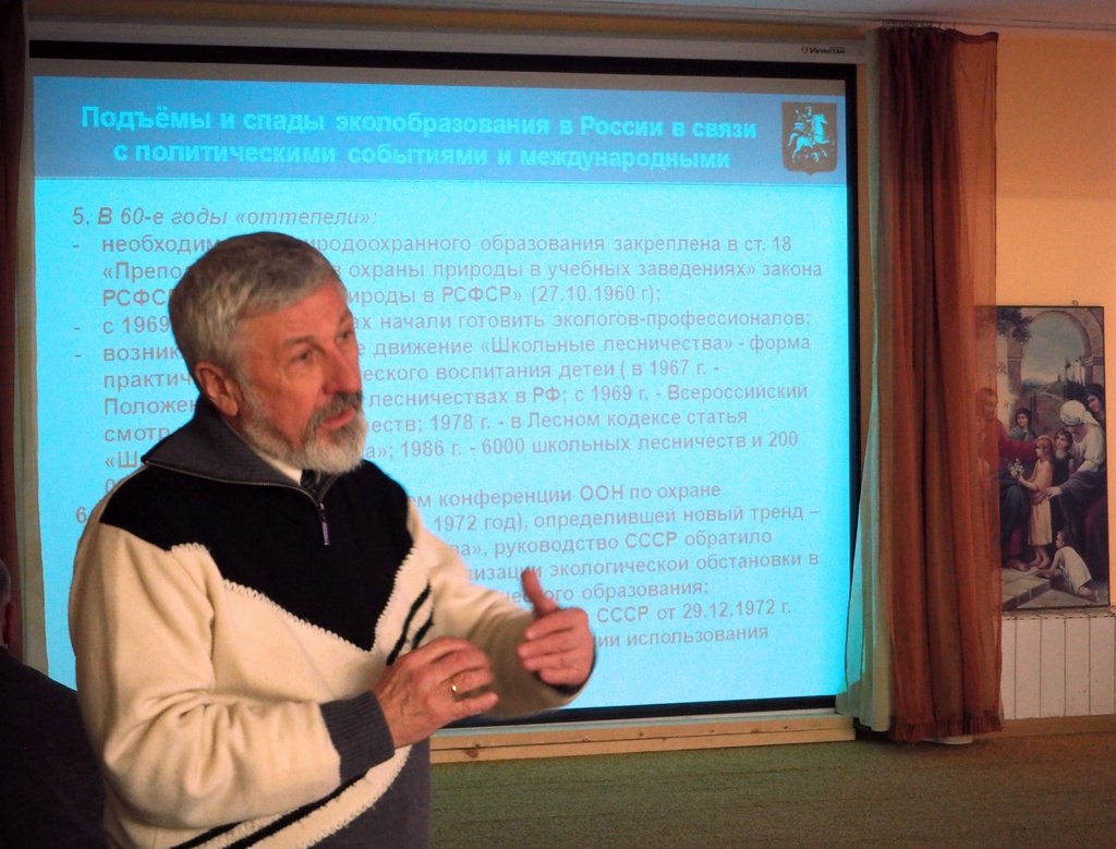 29 ноября в духовно-просветительском центре им. сщмч. Георгия Извекова при Донском храме г. Мытищи под председательством протоиерея Олега Мумрикова в рамках XVI Московских областных Рождественских чтений «Молодежь: свобода и ответственность» состоялся круглый стол «Экологическое образование и воспитание: перспективы соработничества Церкви, государства и общественных организаций». Протоиерей Олег Мумриков, ответственный за экологическую работу в Московской епархии, познакомил участников круглого стола с итогами работы в 2018 году и перспективами развития церковно-экологической деятельности. С докладами выступили научный руководитель гидробиологической станции «Глубокое озеро» Н.М. Коровчинский, кандидат наук, член-корреспондент Международной академии педагогического образования Т.В. Дунаева, ответственная за экологическую работу в Озёрском благочинии Е.Ю. Варлыгина, педагог дополнительного образования школы №1449 В. Р. Пенкина. В работе круглого стола приняли участие ответственные за экологическую работу в благочиниях, экологи, педагоги, слушатели богословских курсов.