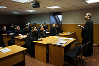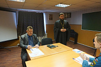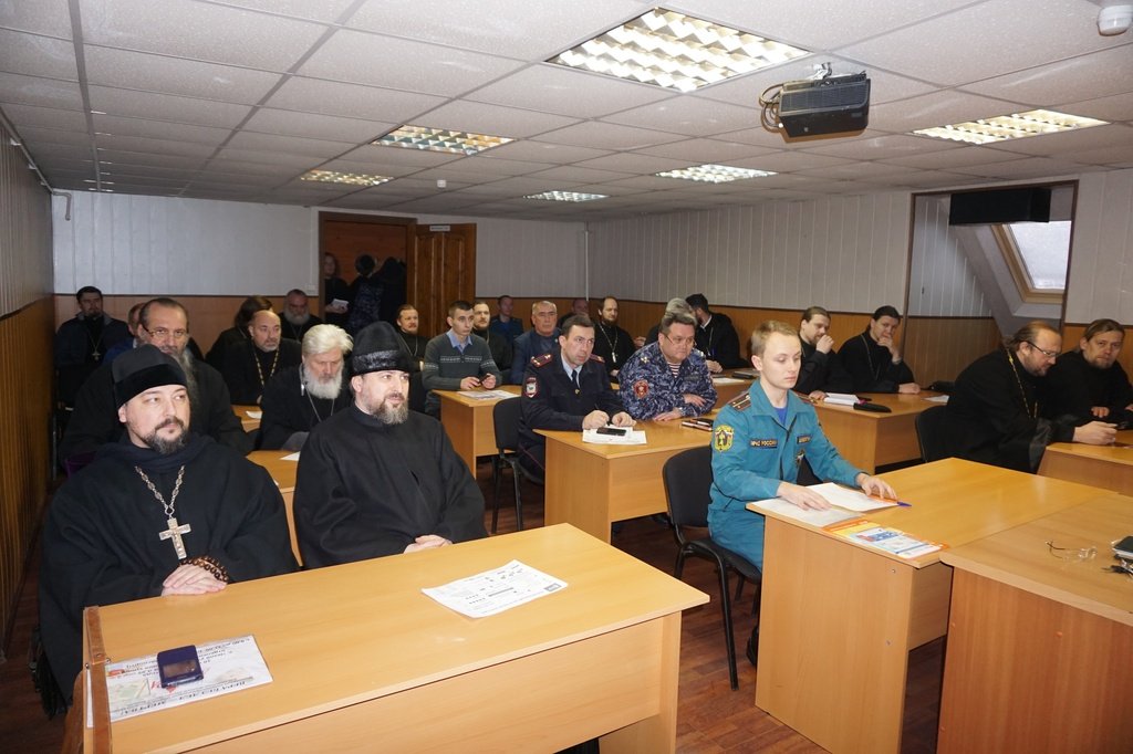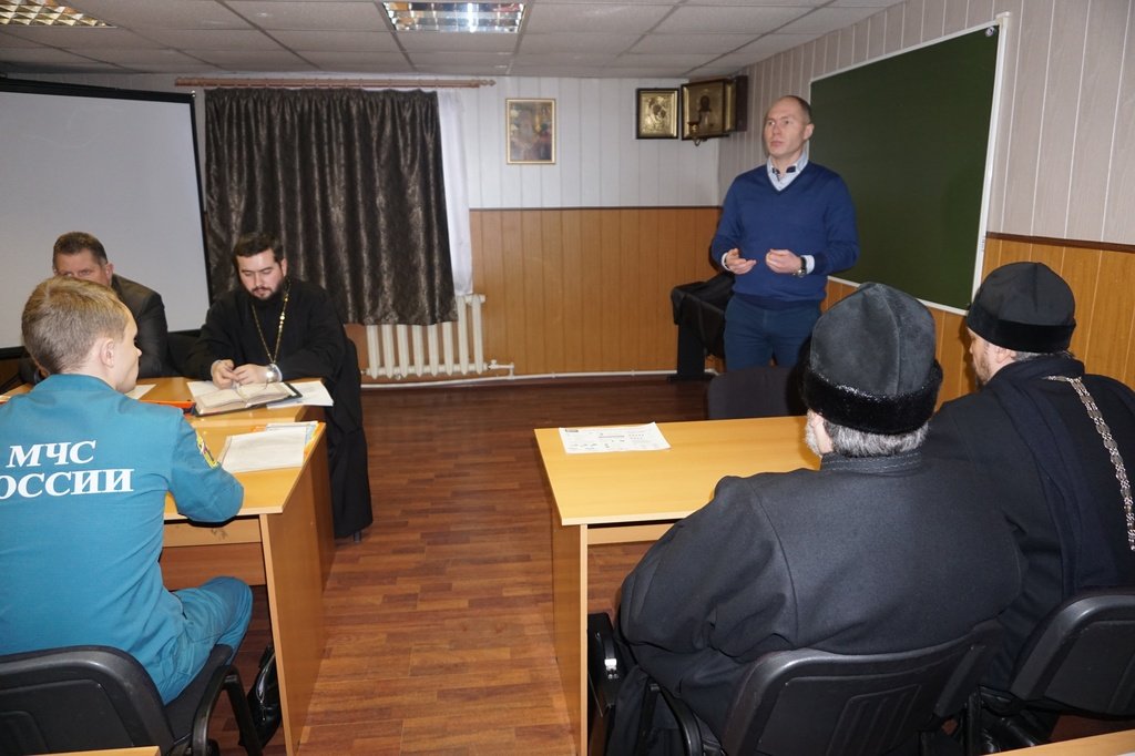 24 декабря в здании воскресной школы Зачатьевского храма города Чехова состоялось очередное собрание духовенства Чеховского церковного округа. В ходе собрания состоялась встреча с заместителем начальника полиции по охране общественного порядка ОМВД России по г.о. Чехов Г.В. Пугачевым, старшим опер-уполномоченным по особо важным делам Д.А. Козыбиным, начальником Чеховского пожарно-спасательного гарнизона Д.А. Егоровым, начальником Чеховского филиала Управления вневедомственной охраны по Московской области А.Н. Батуковым, которые напомнили о мерах безопасности при проведении праздничных богослужений и массовых мероприятий на приходе. Затем участниками собрания были рассмотрены вопросы приходской деятельности. Настоятель Всехсвятского храма села Ивановское г.о. Чехов иеромонах Самуил (Бурбенский) сделал сообщение о ходе ремонтно-реставрационных работ по восстановлению Всехсвятского храма, которые проводятся Чеховским благочинием в рамках программы по восстановлению порушенных святынь. В завершение собрания состоялся пастырский семинар «Таинство Елеосвящения. Современные заблуждения и пастырский подход к их искоренению», который провел настоятель храма Грузинской иконы Божией Матери протоиерей Евгений Хмыров.
