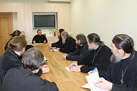 25 декабря состоялось собрание духовенства Звенигородского благочиния. Благочинный протоиерей Николай Курдов познакомил духовенство с циркулярами и распоряжениями, поступившими из Московского епархиального управления. Ответственный за образование и катехизацию в благочинии священник Николай Куренков рассказал о мероприятиях, прошедших в рамках Рождественских чтений. На собрании были утверждены темы пастырских семинаров на 2019 год. С докладом «СМИ и издательская деятельность на приходе» выступил священник Алексий Калачиков.
