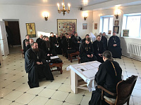 25 декабря в Христорождественском храме г. Луховицы под председательством благочинного протоиерея Владимира Сазонова состоялось собрание духовенства Луховицкого церковного округа. В ходе собрания благочинный довел до сведения присутствующих циркуляры митрополита Ювеналия. Затем были подведены итоги уходящего года и намечены планы на наступающий год. В рамках пастырского семинара помощник благочинного церквей Луховицкого округа священник Василий Сафронов сделал доклад на тему «Свобода и ответственность священнослужителя в публикациях в СМИ и социальных сетях».