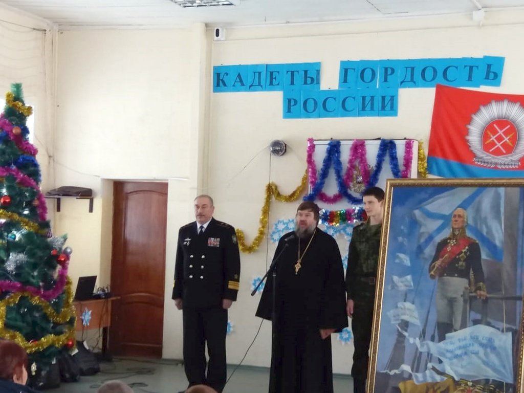 27 декабря в Рузском казачьем кадетском корпусе прошел новогодний праздник, в котором принял участие благочинный Рузского округа протоиерей Игорь Лепешинский. Он поздравил преподавателей и учащихся с наступающими праздниками и преподнес кадетскому корпусу живописное изображение праведного Феодора Ушакова и книгу об адмирале.