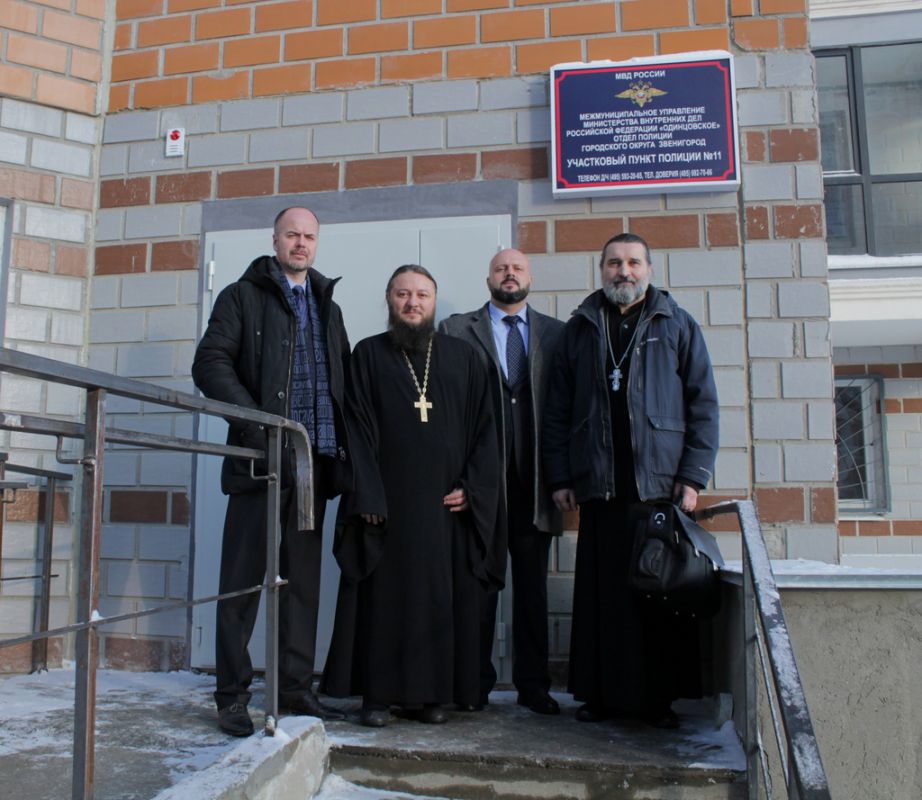 27 декабря в микрорайоне «Восточный» состоялось открытие нового участкового пункта отдела полиции г.о. Звенигород. В мероприятии приняли участие заместители главы г.о. Звенигород Р.Х. Мангушев и А.В. Поплавский, благочинный церквей Звенигородского округа протоиерей Николай Курдов и ответственный в благочинии за взаимодействие с казачеством священник Александр Королев.