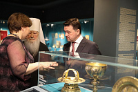 Обращаясь к присутствующим, Андрей Юрьевич сказал: «Мы уделяем большое внимание развитию музея «Новый Иерусалим». Выставка Фаберже была очень успешна, и сейчас мы представляем следующую — «Русское искусство», где представлены и церковные предметы, и картины наших художников. Во время Великой Отечественной войны богатства из ризниц русских монастырей были вывезены и сохранены в Алма-Ате, теперь представлены у нас в постоянном режиме».