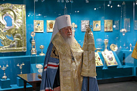 По окончании богослужения Его Высокопреосвященство обратился к собравшимся: «Дорогой Андрей Юрьевич, уважаемый Василий Сергеевич, возлюбленные братья и сестры! Для меня сегодня большая радость освятить это новое здание музея. Мне хотелось бы перед тысячами посетителей, которые, узнав об открытии выставки, устремятся сюда, сказать: я восхищаюсь тем, что великие произведения наших русских мастеров сохранились в целости и сохранности. Сегодня это слава нашего искусства, слава нашей Церкви и нашей России. Хотел бы призвать Божие благословение на всех труждающихся здесь с пожеланием помощи Божией. Пусть Господь всех вас сохранит в благоденствии на многая и благая лета!»