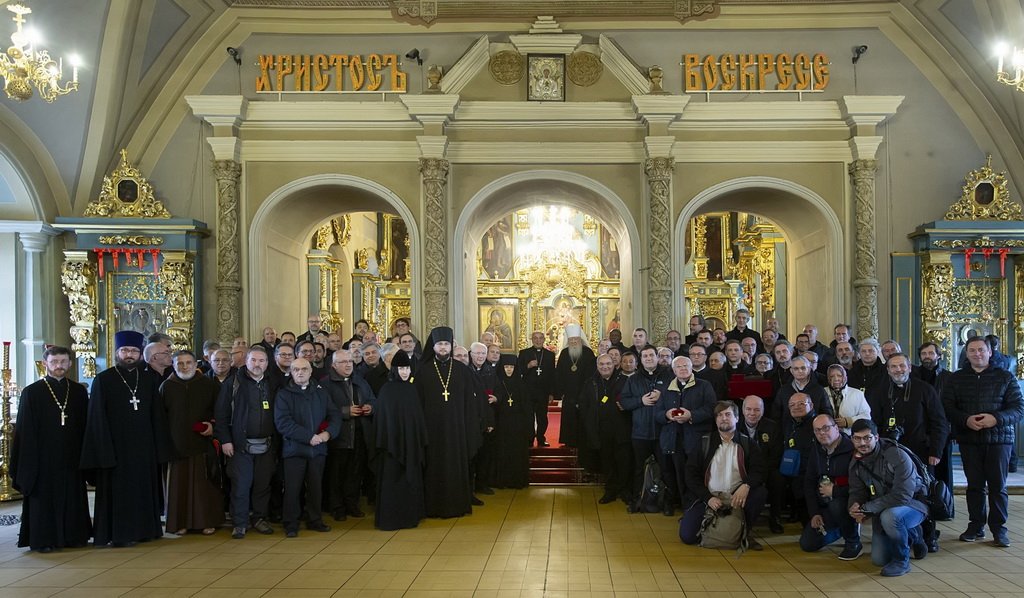 В завершение встречи Владыка митрополит ответил на вопросы гостей, после чего в Успенском храме была сделана фотография на память.