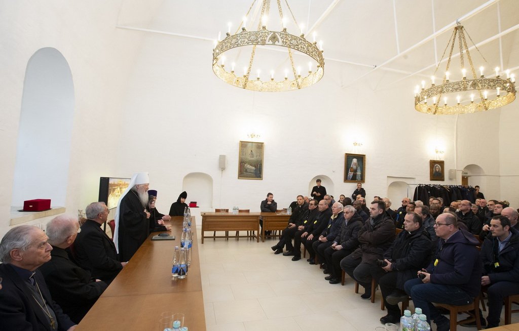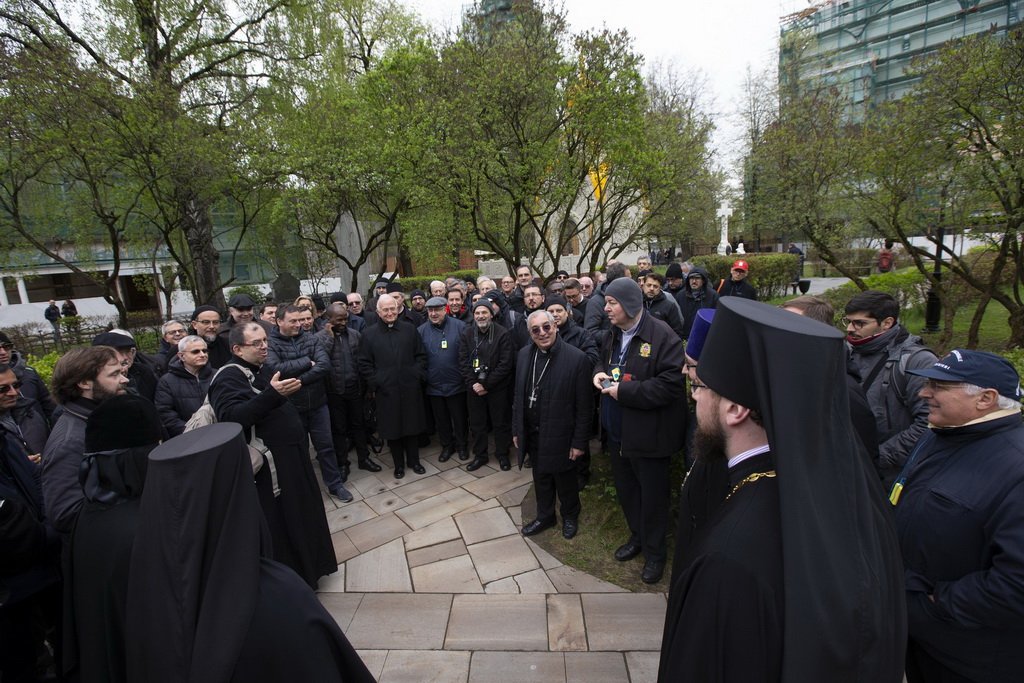 С тех пор у меня было много встреч с братьями из Римско-католической церкви как в Риме, так и в Москве. Сегодня я с большой радостью встречаю вас, дорогие братья. Я служу в этом монастыре уже 42 года, и я попросил, чтобы вас, как моих любимых гостей, встретили колокольным звоном. Я вновь и вновь горячо и сердечно приветствую вас и говорю вам: «Добро пожаловать! Христос воскресе!»