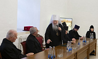 После экскурсии по обители, которую провела благочинная обители монахиня Евдокия (Киреева), гости посетили Успенский храм, где состоялась их встреча с митрополитом Ювеналием.