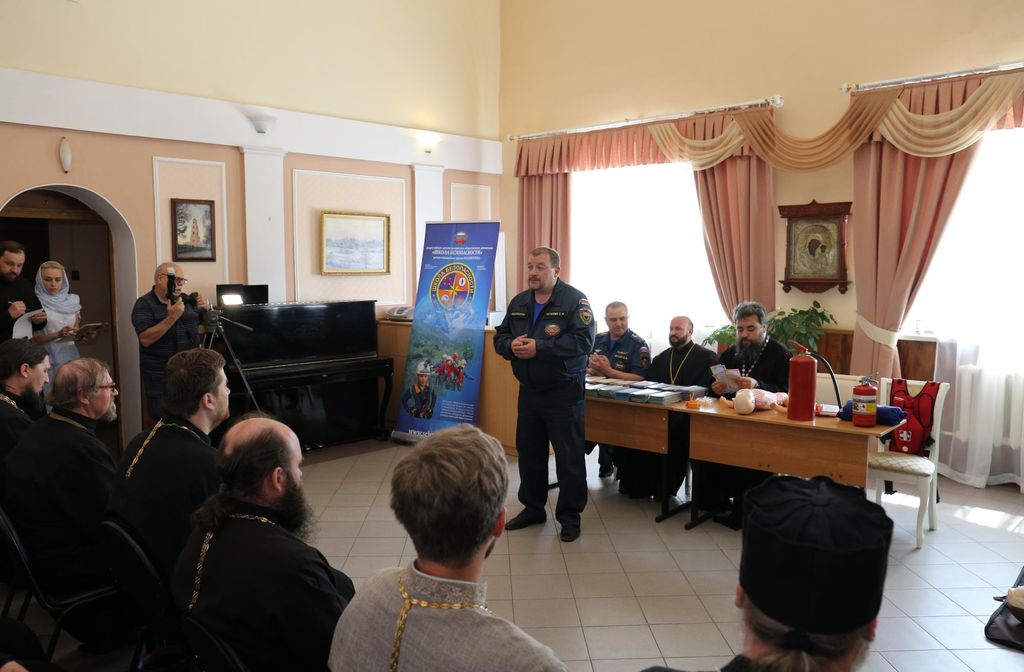 29 мая в духовно-просветительском центре «Благовест» при Богородицерождественском соборе г. Орехово-Зуево состоялся совместный обучающий семинар для духовенства и сотрудников приходов Орехово-Зуевского и Ликино-Дулевского благочиний на тему «Обеспечение личной безопасности, навыков поведения в чрезвычайных ситуациях и приемах оказания первой помощи». Семинар был организован Епархиальным отделом по взаимодействию с Вооруженными силами и правоохранительными органами и Общероссийской общественной организацией «Российский союз спасателей» (Россоюзспас). Мероприятие провели начальник отдела надзорной деятельности по г.о. Орехово-Зуево подполковник И.В. Беккер, представитель общероссийской общественной организацией «Российский союз спасателей» С.В. Тетюхин. На семинаре присутствовали благочинный Орехово-Зуевского церковного округа протоиерей Андрей Коробков, благочинный Ликино-Дулевского церковного округа священник Антоний Рыжаков, духовенство Орехово-Зуевского и Ликино-Дулевского благочиний, сотрудники приходов благочиний. На семинаре было рассказано о правилах поведения в чрезвычайных ситуациях, о приемах и методах оказания первой помощи.