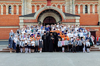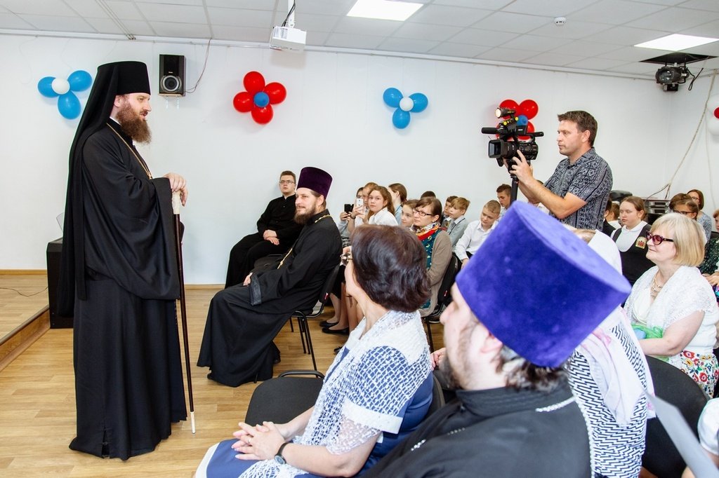 В актовом зале приходского центра собора прошло праздничное мероприятие. Его открыл хор гимназии, который исполнил музыкальную композицию «Весна», ставшую победителем в муниципальном конкурсе Рождественской песни 2019 года. Исполнительный директор гимназии священник Сергий Заплатников подвел итоги года и рассказал о жизни гимназии. Владыка Константин вручил грамоты особенно отличившимся в этом учебном году гимназистам: победителям и призерам регионального этапа всероссийских олимпиад, победителям и призерам муниципальных творческих конкурсов, а также отличникам и активистам. В завершение визита для епископа Константина была проведена экскурсия по зданию гимназии.