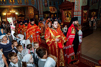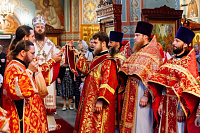31 мая Православную классическую гимназию имени преподобного Серафима Саровского г. Домодедово посетил ректор Коломенской духовной семинарии, председатель Епархиального отдела религиозного образования и катехизации епископ Зарайский Константин. В соборе Всех святых, в земле Русской просиявших, г. Домодедово Владыка Константин возглавил Божественную литургию, на которой ему сослужили благочинный Домодедовского церковного округа, директор гимназии протоиерей Владислав Гусар, преподаватели, родители учащихся и выпускники гимназии в священном сане, духовенство благочиния. За богослужением пел хор гимназии, в храме молились педагоги, родители и учащиеся. По окончании Литургии протоиерей Владислав Гусар обратился к Владыке со словами благодарности и от лица гимназистов преподнес ему в дар икону небесного покровителя учебного заведения — преподобного Серафима Саровского. В ответном слове Владыка Константин поздравил всех с окончанием учебного года и подарил гимназии издание, посвященное 400-летию Дома Романовых.