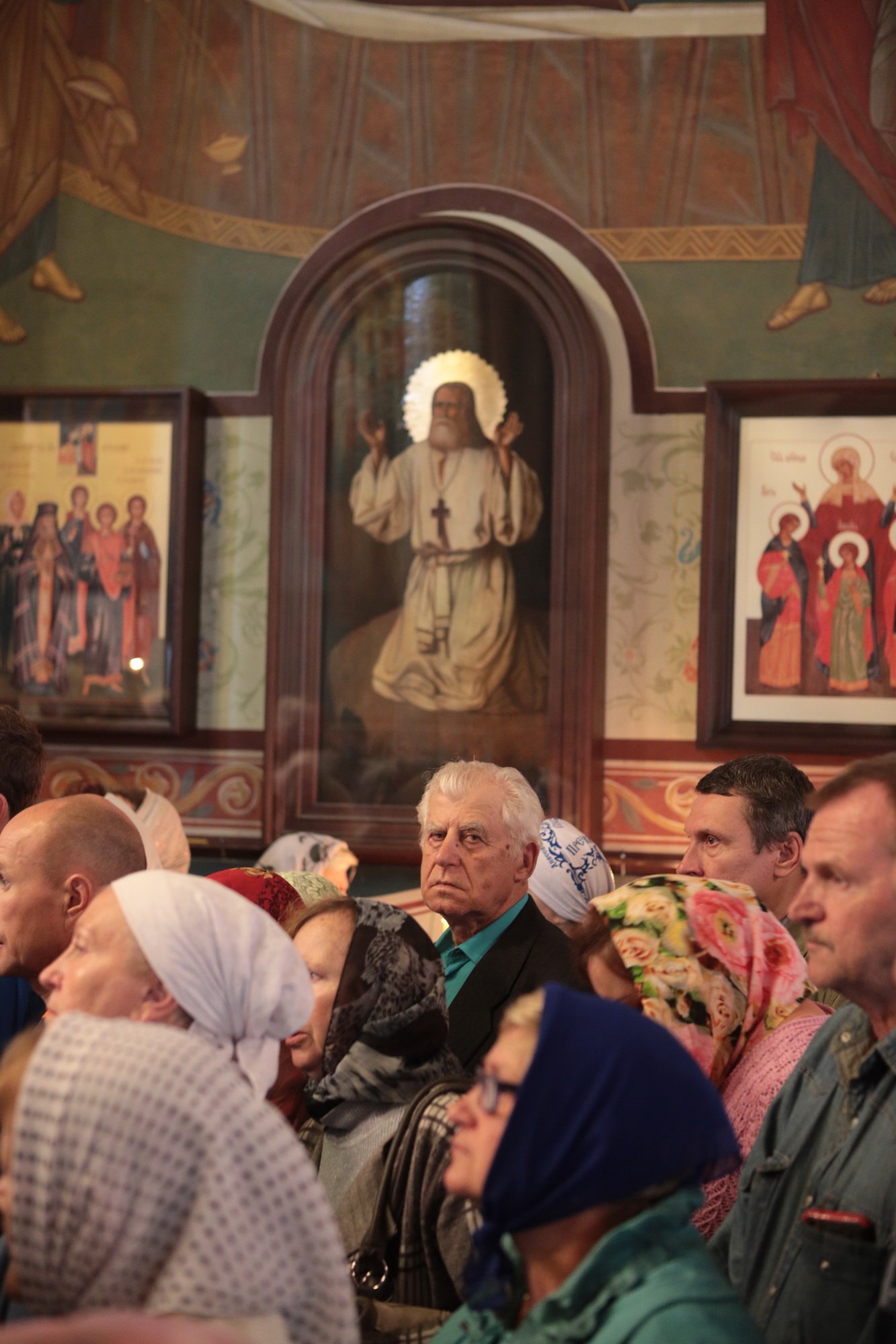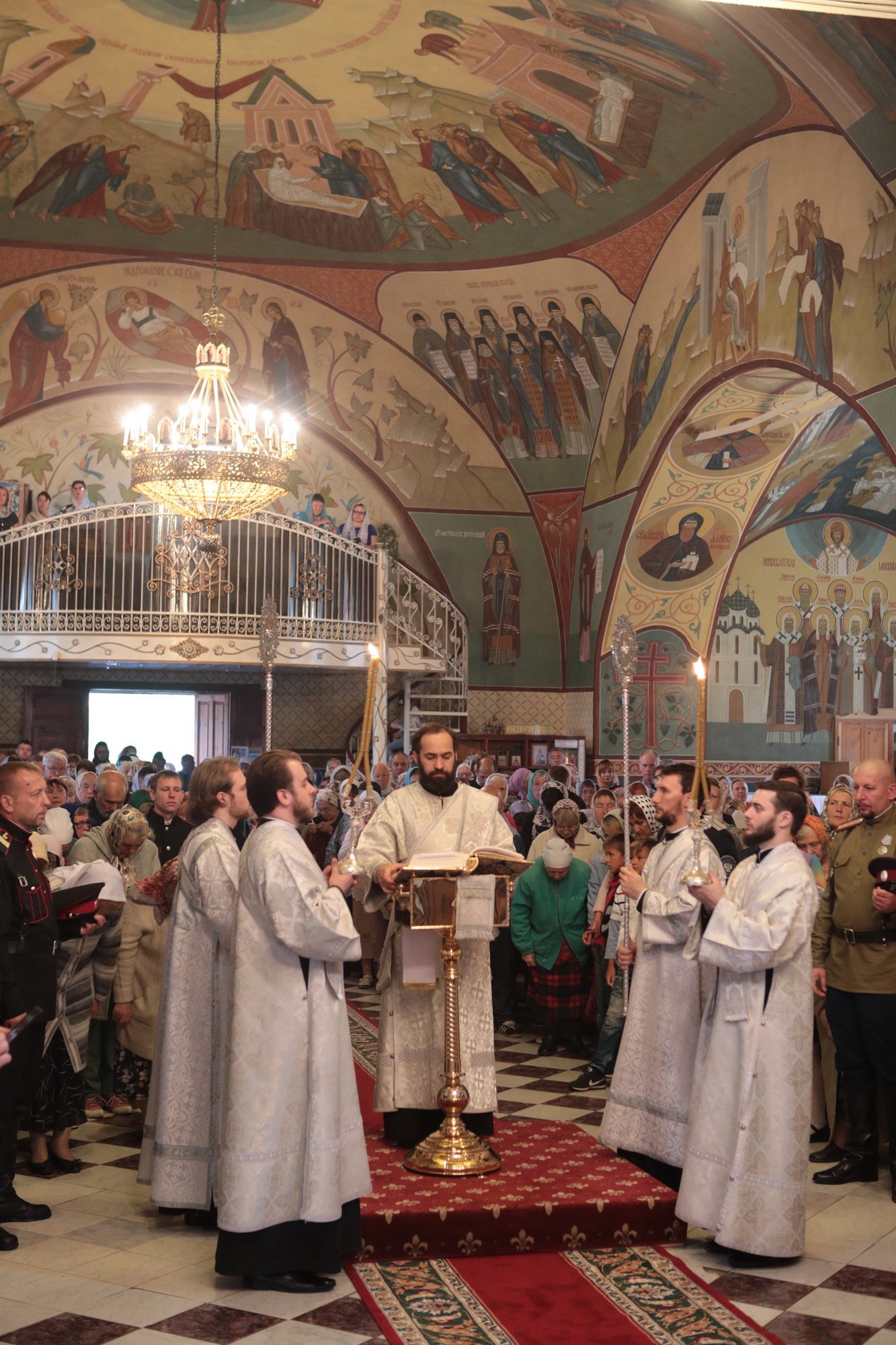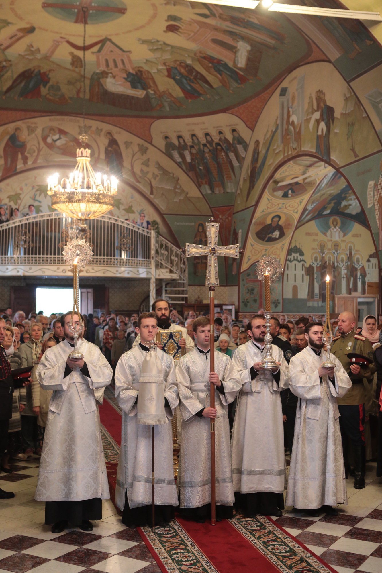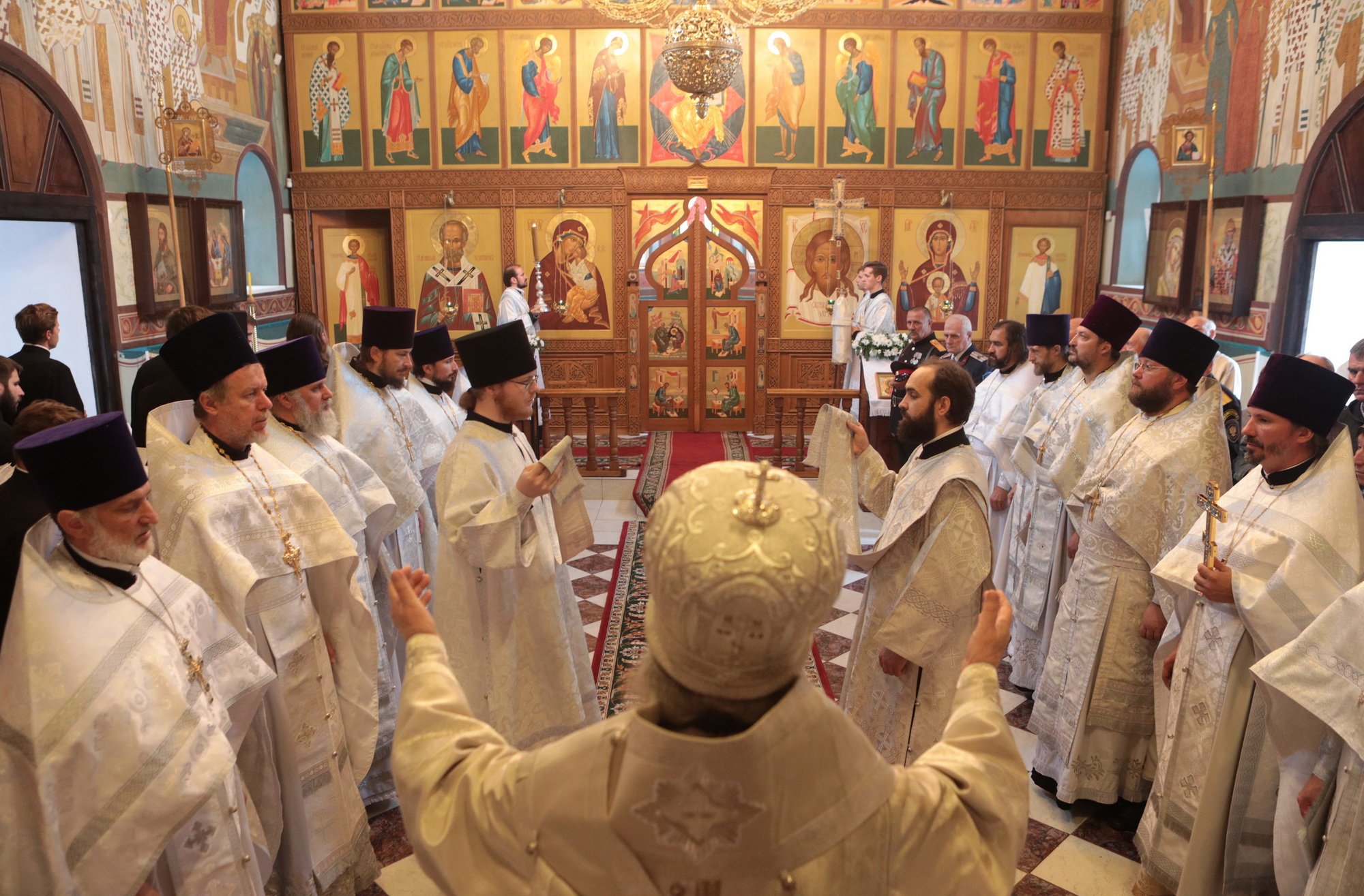 «Благодарю Вас, отец Иоанн, за Ваши слова! Уважаемые Олег Викторович, Никита Юрьевич, братья архипастыри, пастыри, возлюбленные братья и сестры! Каждый раз, когда я размышляю о том, что сказать после Божественной литургии, я обращаю свой взор к евангельскому чтению дня. То, что мы слышим в Евангелии, относится непосредственно ко всем нам. Когда Христос проповедовал в пустыне, послушать Его и напитаться Его словом собрались четыре тысячи человек, кроме женщин и детей (см.: Мф. 15:37), об этом читалось в сегодняшнем Евангелии. Спаситель пожалел народ, который уже три дня находился в пустынном месте, и захотел его накормить. Когда апостолы сказали, что у них всего семь хлебов и немного рыбок, Христос повелел всем возлечь на землю, и воздав благодарение, чудесным образом умножил количество пищи (см.: Мф. 15:32-39). Это место в Евангелии напоминает нам о Божием милосердии, в том числе, к нам и к этому святому храму. Он был закрыт, осквернен, в нем находились различные учреждения, а потом, когда он почти разрушился, его захотели сравнять с землей. В те времена жители были лишены духовной пищи. Но по Своей милости Господь послал сюда отца Иоанна, который в течение четверти века заботился о возрождении этого храма. Восстановление осуществлялось всем миром. Я выражаю глубокую благодарность Олегу Викторовичу, главе городского округа Серебряные Пруды, который много помогал в этом деле. Свои средства в восстановление храма вложил и Никита Юрьевич, первый заместитель председателя Московской областной думы. Я удивляюсь Вашей неиссякаемой энергии и доброй воле, потому что Вы построили уже несколько храмов в Подмосковье и не останавливаетесь на достигнутом. Сердце Ваше горит желанием служить Богу и верующим людям, жителям Московской области. Я рад, что сегодня Господь сподобил меня совершить великое освящение этого прекрасного храма, который по своему благолепию больше похож на городской собор. Я поздравляю вас с этим историческим событием и с 95-летием основания этого края. Причастников и причастниц я поздравляю с принятием Святых Христовых Таин. Храни вас всех Господь!»