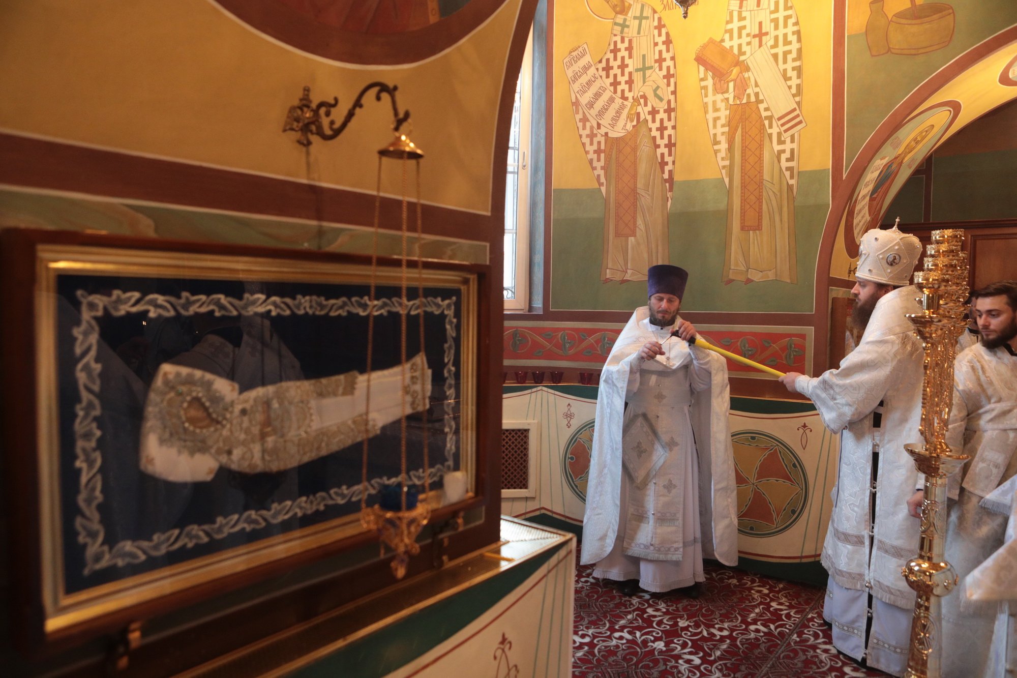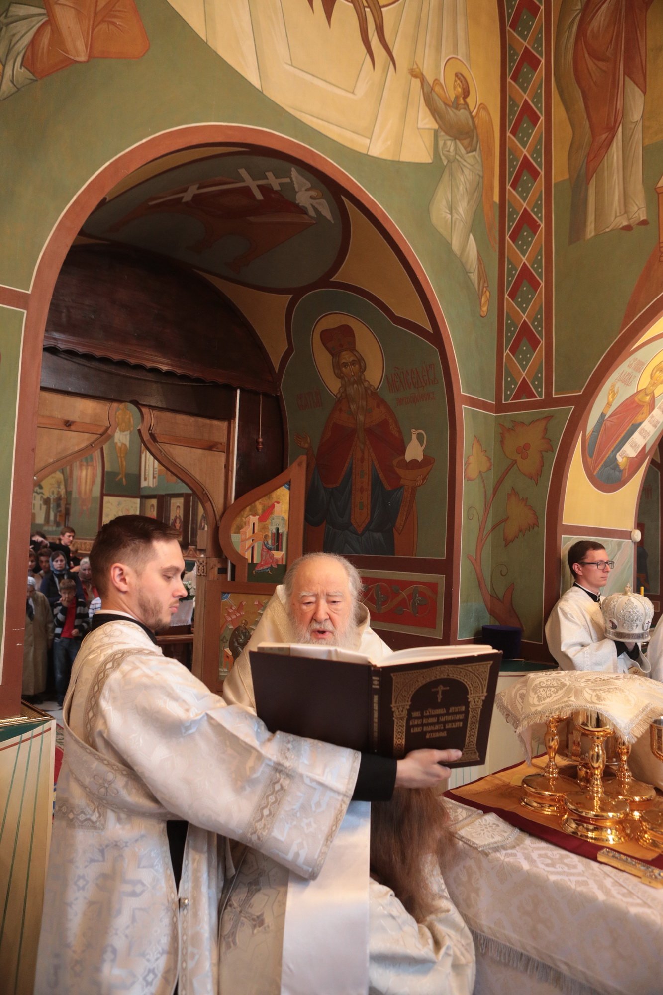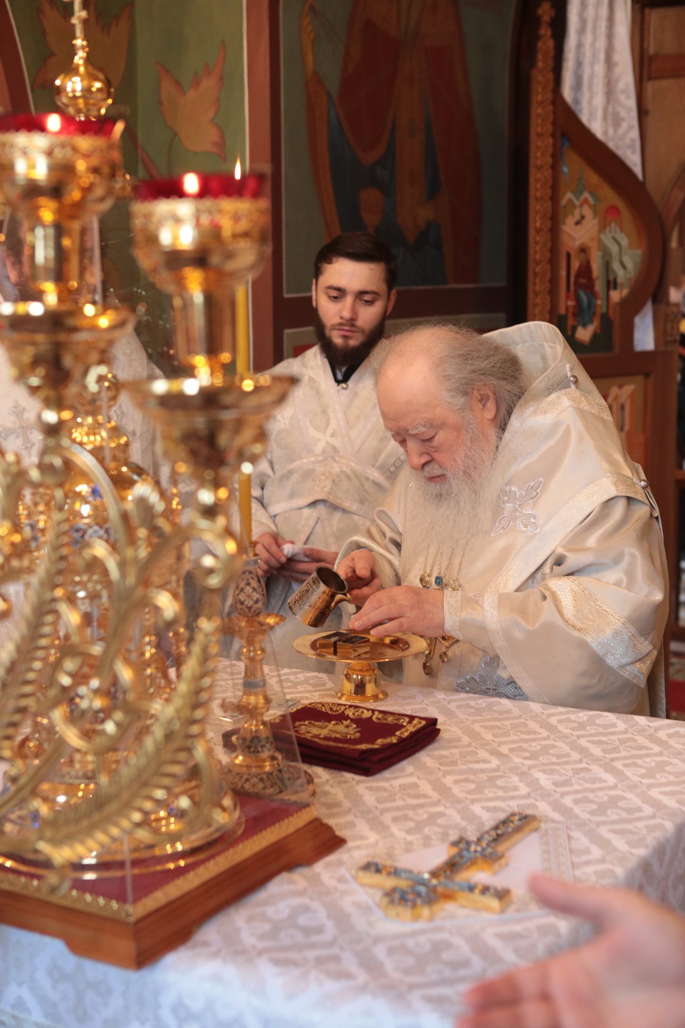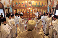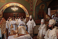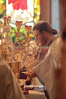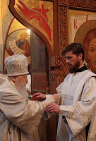 За Литургией Владыка митрополит рукоположил в сан диакона чтеца Иоанна Анисимова, а иеродиакона Георгия (Тавицкого) в сан пресвитера.
