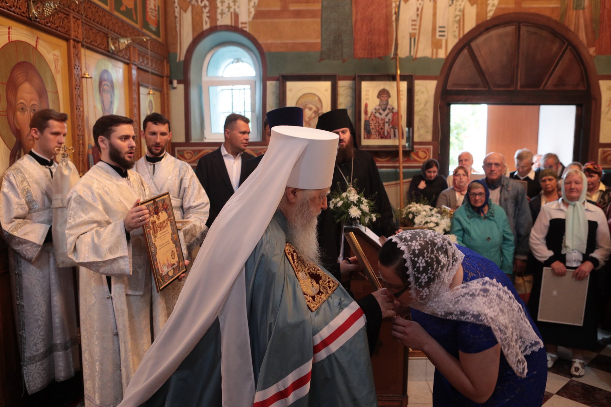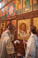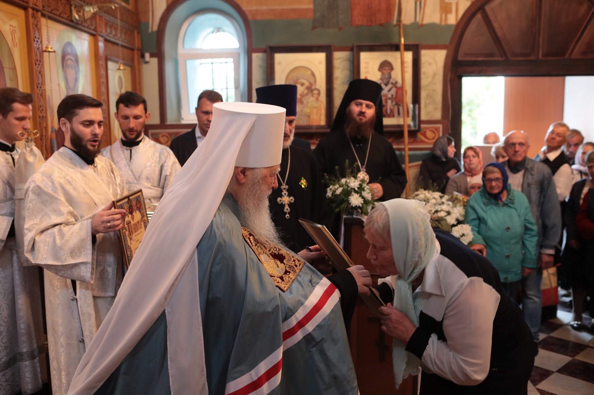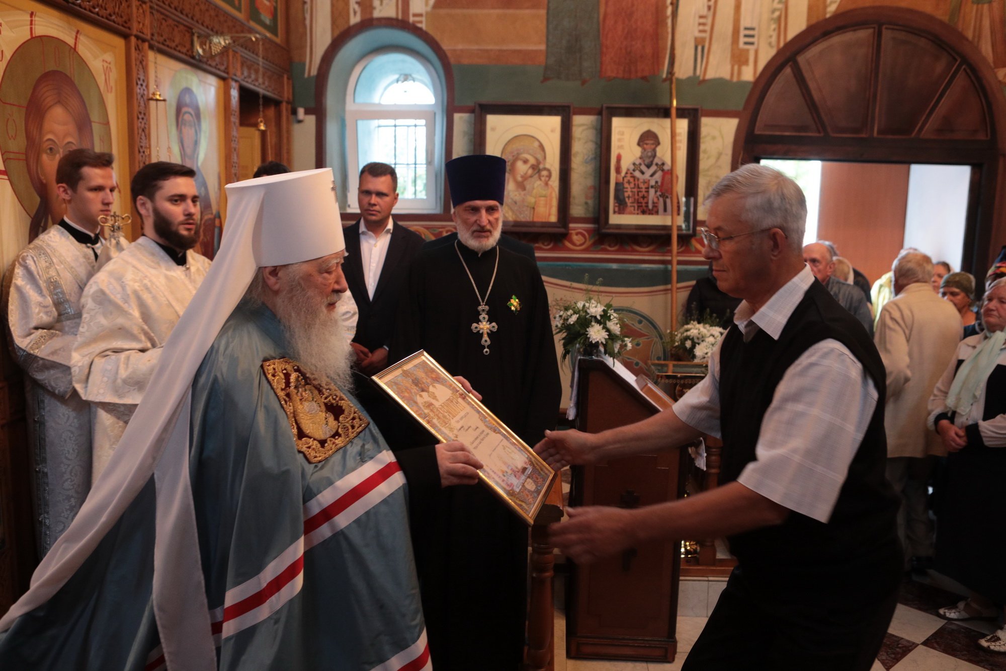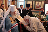 Отец Иоанн преподнес Его Высокопреосвященству икону Божией Матери «Знамение».